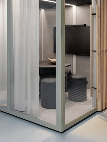 In recent years, awareness of how the soundscape affects us has grown. There is significant interest in acoustic solutions and how design can be used to reduce noise. This development is exciting, as the significance of the soundscape for well-being and performance at work is becoming more recognized. Abstracta is at the forefront of innovation, working toward a more holistic perspective on space, considering it both as a visual environment and a soundscape. Check out our extensive acoustic product range, featuring everything from phone booths and wall panels to floor screens, suspended dividers, and innovative acoustic lighting. With our expertise, we can help you design harmonious spaces that delight both the eyes and ears.