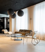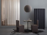 A globe-shaped lamp of functional precision, innovative design and exceptional acoustics, Moon provides directed lighting quality of the highest order. Its shape and generous scale allow it to absorb both high- and low-frequency ambient noise effectively. “I’ve given a lot of thought to outer space and the Moon – to the kind of vacuum that exists there. A place with light, yet utterly silent,” remarks Bernstrand.