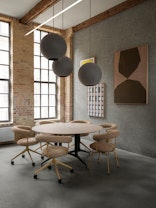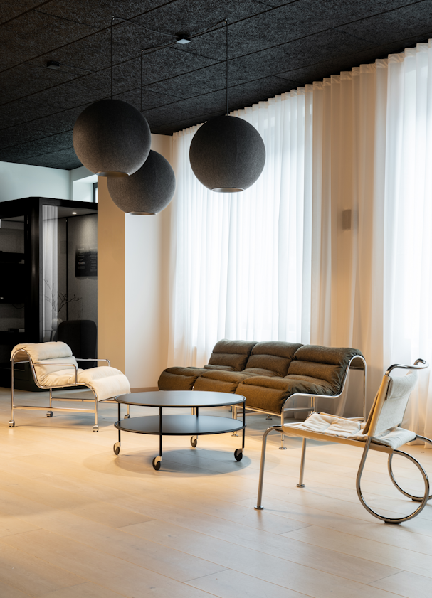 The sound absorbing lamp brings a classic, clean shape to the acoustic lighting segment. The luminaire is recessed in the lamp, creating a comfortable, downward, and glare-free light.