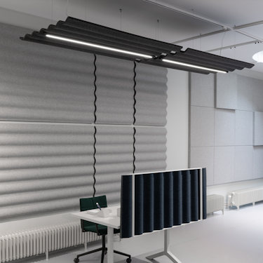 Scala encompasses a full product range! Coordinate the acoustic light with wall panels and screens for a harmonious, wavy style.