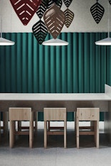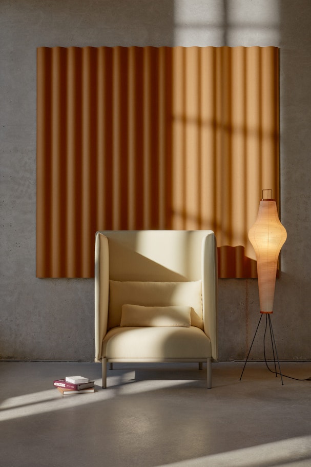 Formen är inspirerad av korrugerad plåt, baserad på sinuskurvor som skapar naturliga luftgap bakom produkten, vilket i sin tur ger en produkt med bättre ljudabsorberande egenskaper.